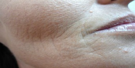 This lady had superficial lines extending down from the crow’s feet and covering the whole of the cheeks, towards the chin area. She was treated with a brand new preparation, Juvederm Hydrate, which is essentially the first injectable combination of hyaluronic acid (dermal filler), a moisturiser and an antioxidant (Mannitol 0.9%), given with an ultra-fine needle. The immediate result was quite stunning. She can expect her skin in the treated areas to be rejuvenated, the lines to be much softer for up to 12 months, and the skin overall to recapture its former lustre and glow. Juvederm hydrate is particularly indicated for areas where the skin is delicate or crepe-like, for example the neck, the back of the hands,the decolletage and around the eyes.